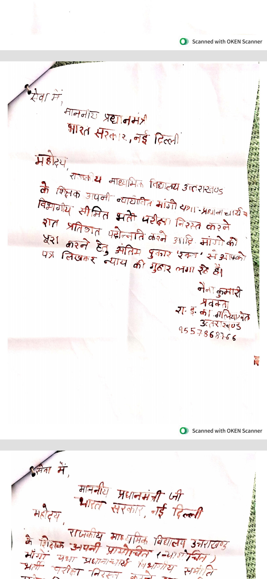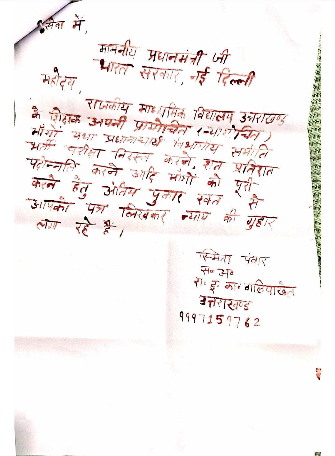देहरादून। उत्तराखंड शिक्षा विभाग में इन दोनों शिक्षक जहां अपनी मांगों को लेकर सरकार के खिलाफ आक्रामक नजर आ रहे हैं तो वहीं कई शिक्षक अभी तक अपनी मांग को लेकर खून से भरे लेटर प्रधानमंत्री नरेंद्र मोदी को लिख चुके हैं,प्रधानाचार्य की सीधी भर्ती और सत प्रतिशत पदोन्नति करने की मांग को लेकर शिक्षक प्रधानमंत्री को पत्र लिख रहे हैं। राजकीय शिक्षक संगठन के अध्यक्ष राम सिंह चौहान का कहना है कि अभी तक 500 से ज्यादा शिक्षक प्रधानमंत्री नरेंद्र मोदी को अपने खून से लिखे हुए पत्र को भेज चुके हैं। लेकिन शिक्षा विभाग और सरकार शिक्षकों की मांगों को पूरा करने को तैयार नहीं है।