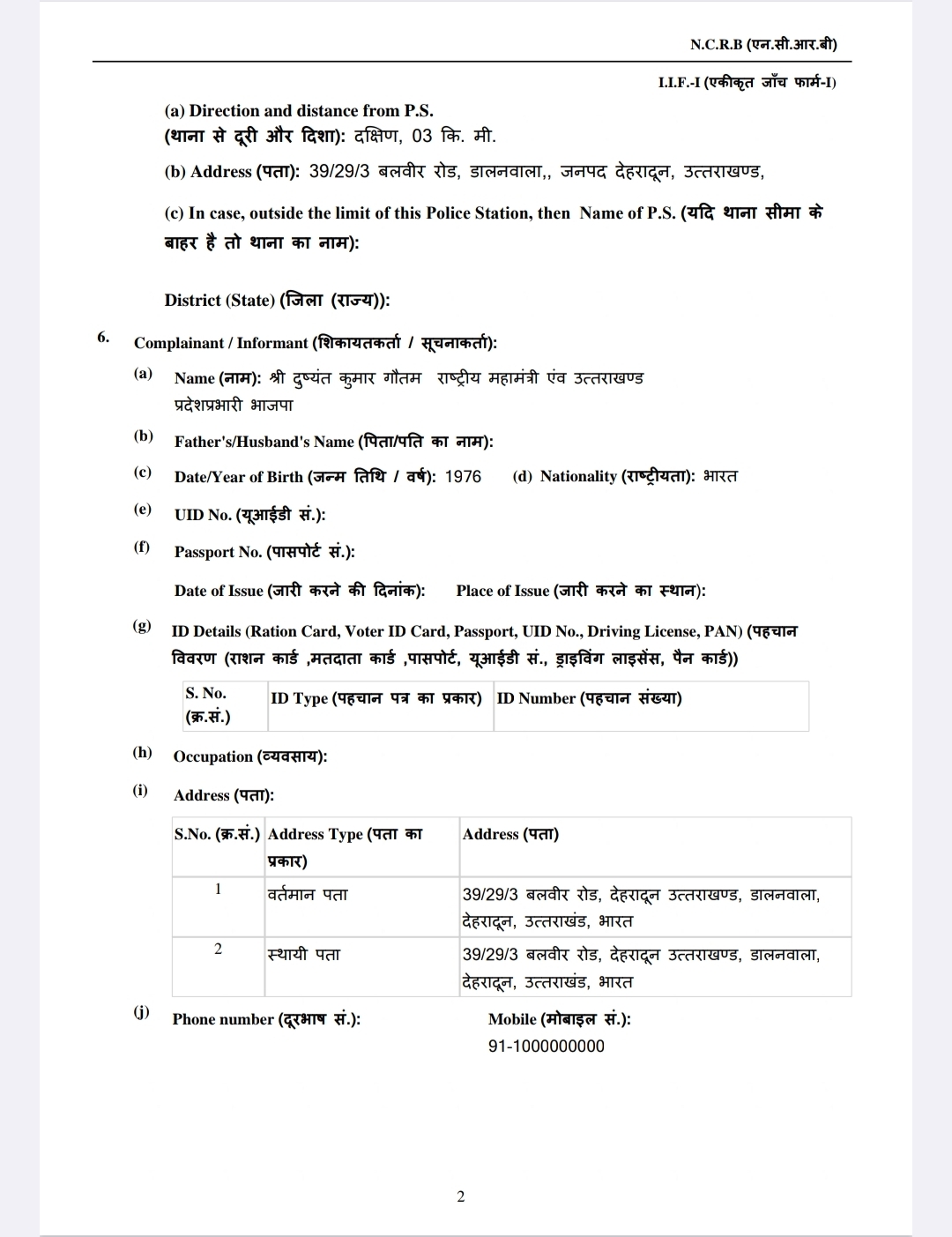 भाजपा के राष्ट्रीय महामंत्री और उत्तराखंड के प्रभारी दुष्यंत कुमार गौतम ने दर्ज कराया मुकदमा