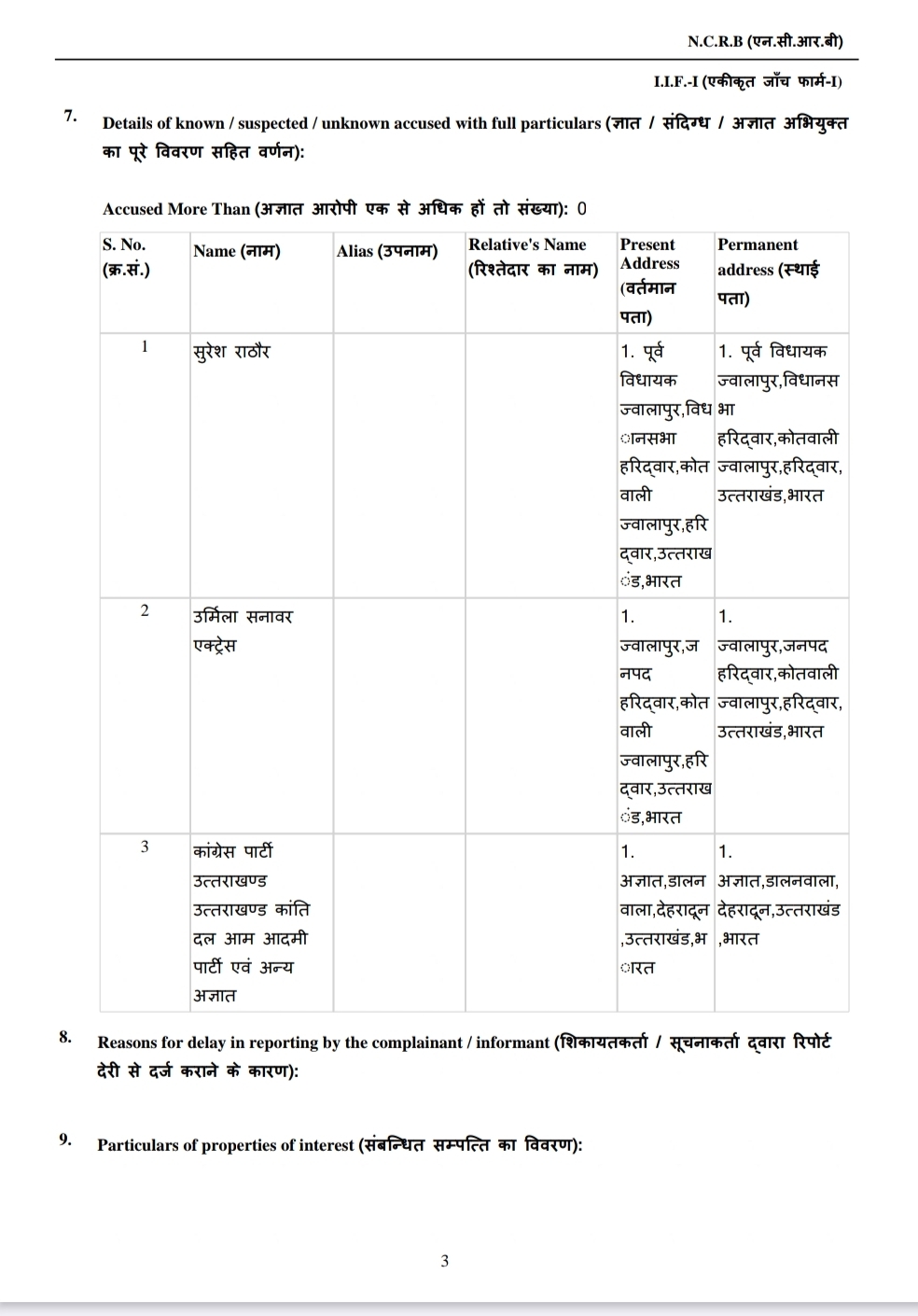 उत्तराखंड कांग्रेस पार्टी, उत्तराखंड क्रांति दल ,आम आदमी पार्टी और अन्य के खिलाफ अज्ञात में दर्ज हुआ मुकदमा